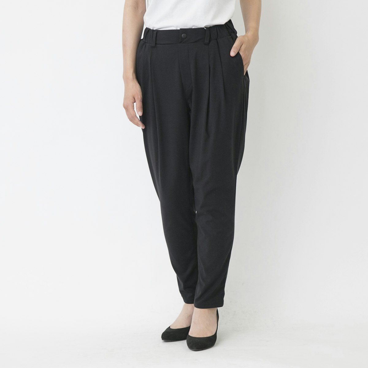 WESTWOOD OUTFITTERSの「きれいめ無地のタックテーパードパンツ」は、美しいシルエットと履き心地が両立したタックテーパードパンツです。その快適さは、販売前に100人以上の女性に実際に穿いてもらったところ、99人の人が楽だと答えたほど。楽なだけでなく、大きなタックが2本入っているので、足がすっきりと長く見える効果があります。