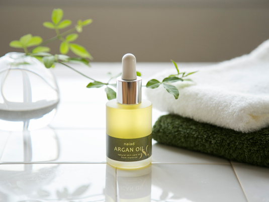 ねこさん、つかい手の声を参考に、アルガンオイルデビューされたのですね。アルガンオイルをブースターとして活用する(=洗顔後まだ少し肌が濡れた状態でアルガンオイルを少量顔につける)ことについて、そのメカニズムが気になって調べたことがあります。そもそもアルガンオイルは親水性が高く、水となじみやすい性質であること。さらに約8割が「オレイン酸」と「リノール酸」という不飽和脂肪酸で構成されており、この成分が角質層の細胞間脂質の隙間に入り込むことで、肌がやわらかくなり、水分(あとからつける化粧水)の通り道を作り、角質層までの浸透をサポートするようなイメージなのだそうです。顔にも手にも髪にも使えるのは、植物性オイルを使う利点の一つ。ぜひこれからもマルチに活用してみてくださいね。