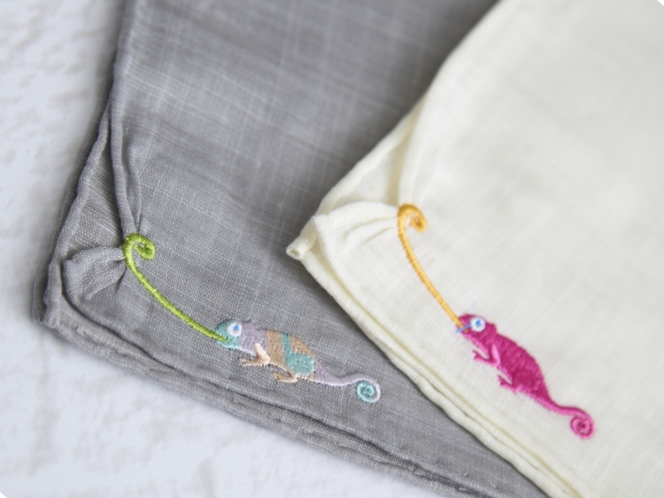 性別を選ばない品。中学を卒業する息子に、あまりハンカチを使わないような彼だけど、身だしなみとしてバックに入れておける、ちょっといいハンカチをプレゼントしたくて、こちらを選びました。爬虫類好きなのでカメレオンの刺繍をとても喜んでいた。
