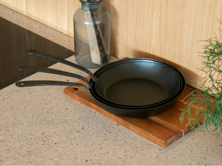 大きさや深さなどの形状、デザインのお好み、価格など、普通のフライパンと同じポイントに加え、「どんな料理をよく作るか、おいしく作りたいか」を基準に選んでいただくのがおすすめです。 先述の通り、製法や板厚によって少し得意な料理が異なるので、炒め物を美味しく作りたいなら、「プレス」か「打ち出し」の板厚薄めのもの、焼き物を美味しく作りたいなら「鋳物」の板厚があるものをぜひ候補に考えてみてください。
