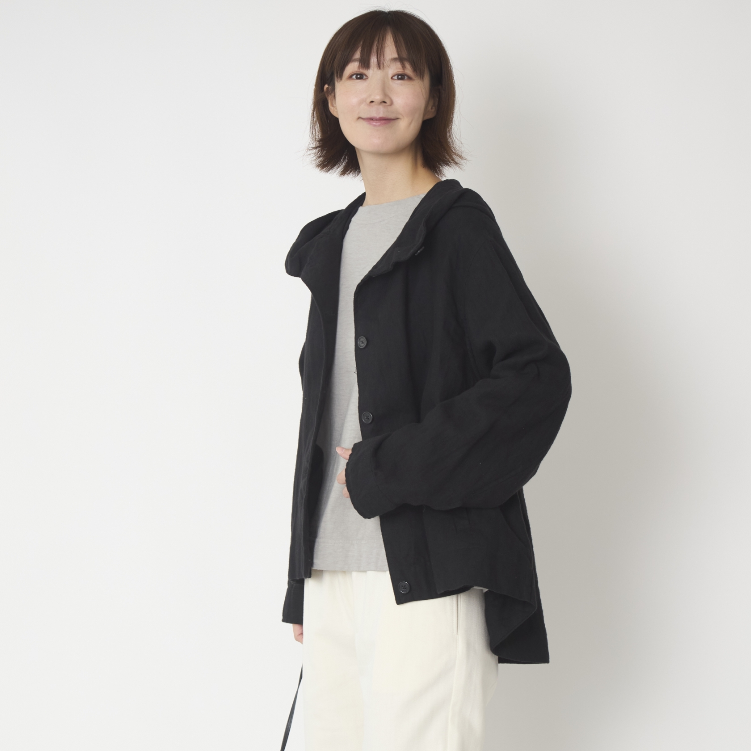 n.o.f.lの「テレデランリネン2WAYプルオーバー」は、カーディガンとしても着られる2WAY仕様。ボタンを背中側にして着ると、シンプルなプルオーバーとしても着ていただけます。襟の開きは深すぎないので、中がチラ見えしてしまう心配もありません。羽織として着られることで、春や秋にも活躍します。