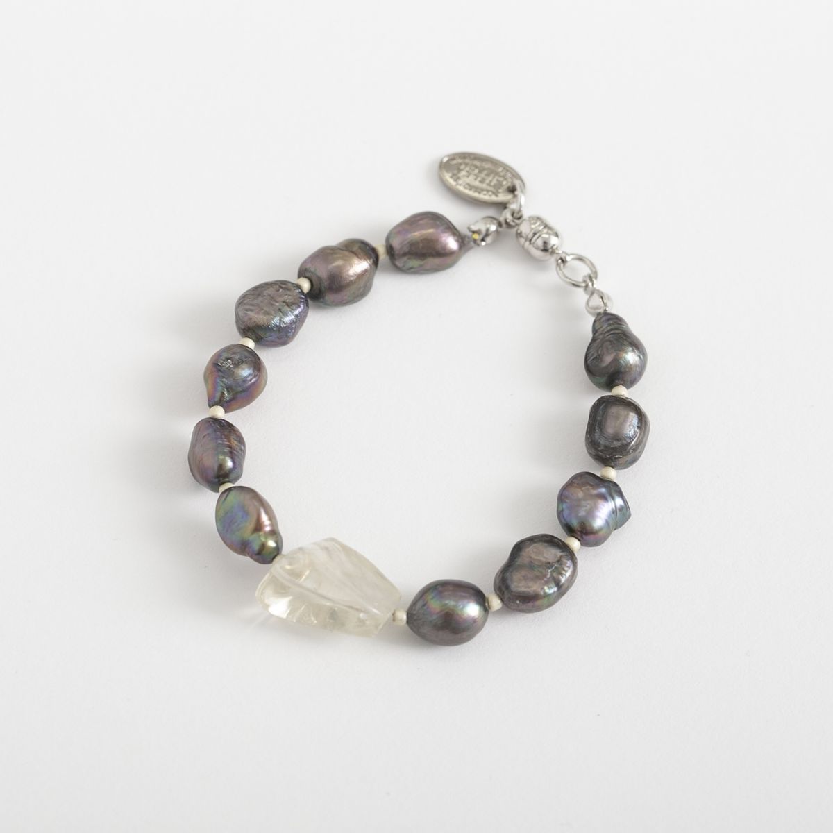 女性の美しさを引き出す「STELLA CIFFON」のブレスレットは、シンプルながら存在感のあるデザインが魅力です。一粒約1cm大という大ぶりの淡水バロックパールを贅沢に使用。丸玉パールとは違いほどよくカジュアルな雰囲気なので、日常使いにぴったりなんです。パールに合わせた天然石が、全体の印象を引き締めてくれます。