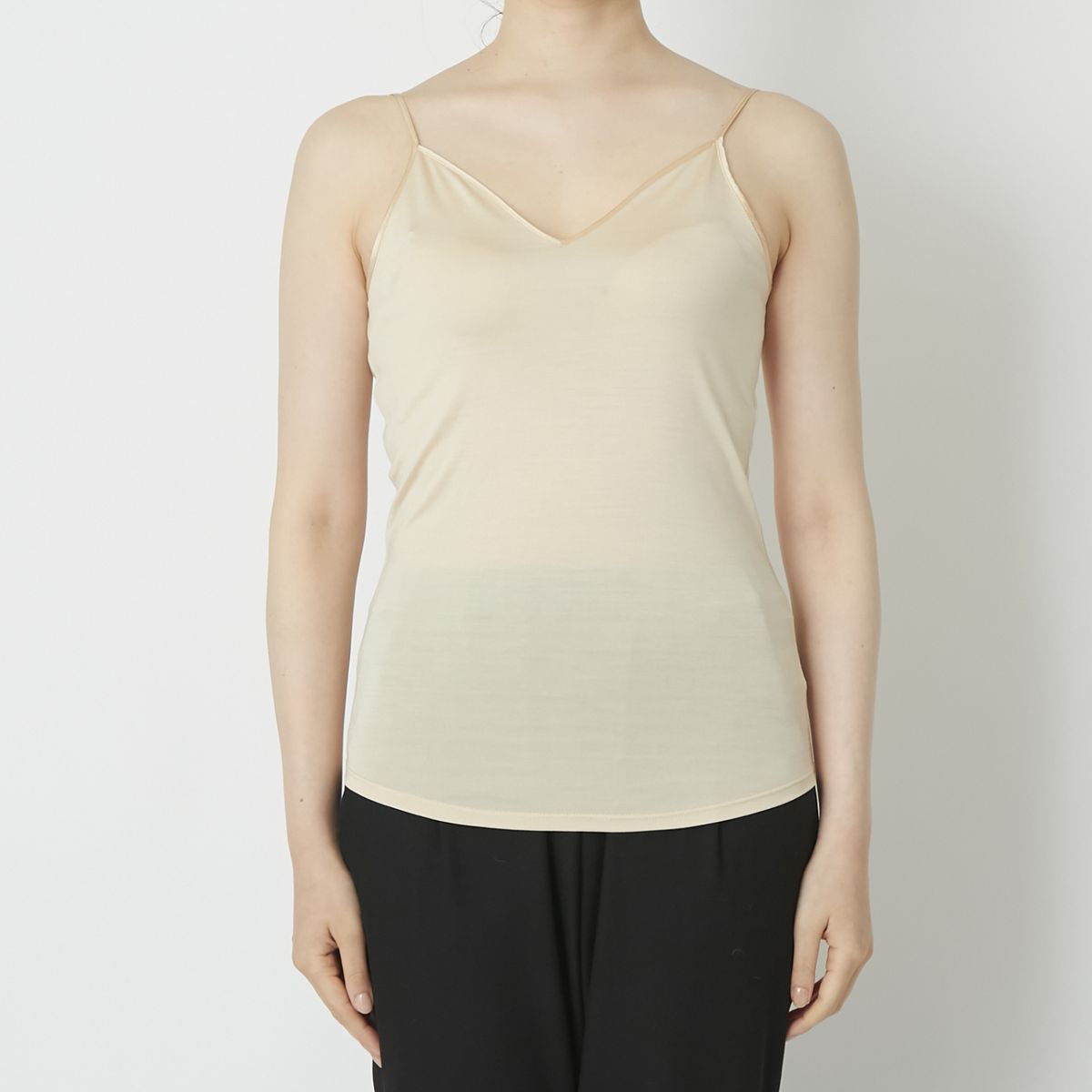 こちらのシルク生地は非常に丈夫なため、ご家庭で手洗いしてもヘタりが気になりません。また、胸元はVカットとなっており、シャツの上ボタンを開けてラフに着こなしたいときもチラ見えしにくく安心です。シルク100%とは思えないお手頃価格を実現しており、出番の多い白シャツのインナーとして年中ヘビロテできる一枚です。