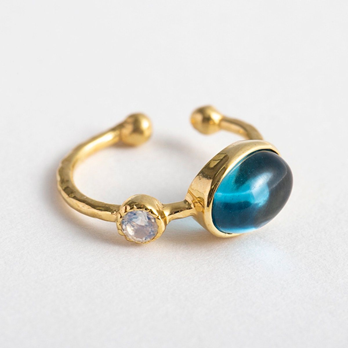 ブルートパーズとブルームーンストーンのイヤーカフ