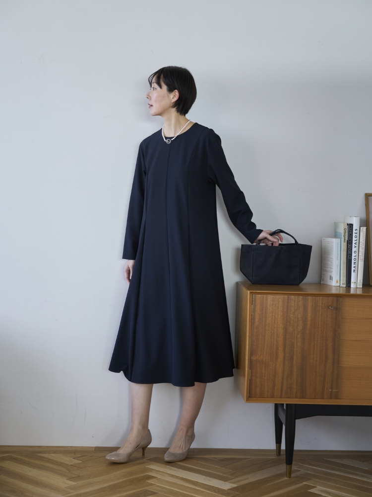 「ウォッシャブルポリエステルのワンピース」には低身長さん版が登場しました。身長150cm~157cmくらいの方がきれいに着て頂けるようにデザインしたワンピースです。