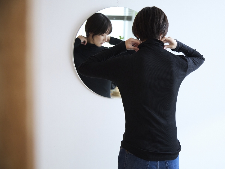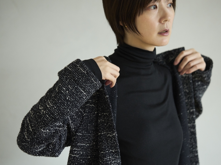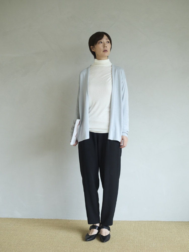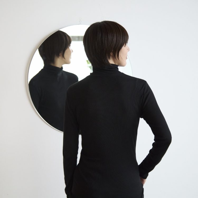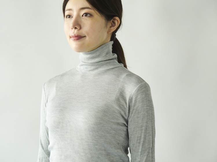 また、個人的にはハイネックが苦手な方にこそ着てもらいたいとも思っています。実は私はハイネックやタートルネックの着心地がずっと苦手でした。首が短くてかっこよく着こなせない、一日着ていると首まわりのちくちくが気になる、という2つの理由のためだったのですが、こちらはそのどちらも気になりません。
