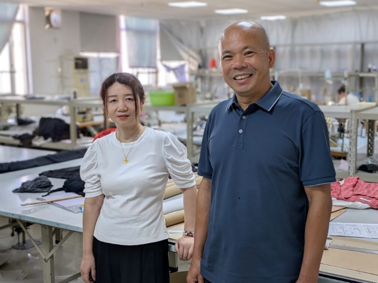 旭日昇工場社長の姚(ヨウ)学峰さんは、35年以上にわたりシルクと向き合ってきたいわばシルクのプロ。職人わずか5~6名の小規模な工場ですが、職人もシルクを知り尽くした熟練スタッフばかりです。裂けやすい繊細な生地を、専用の針を使用し、一着一着丁寧に時間をかけて縫製しています。