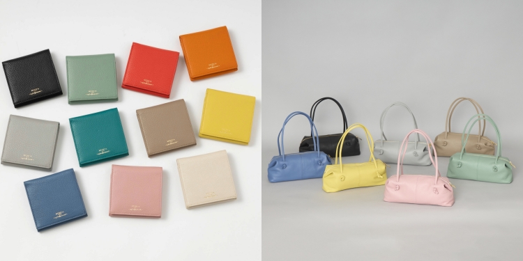 続いては、カラフルなイタリア牛革のシリーズです。経年変化しにくく、使い始めの色が長く続く事、そして見栄えがするのがこのシリーズの人気の理由です。
