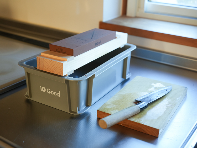 ちなみに、砥石は持ってはいたけれど、こちらも恥ずかしながら使いこなせていませんでした。研ぐまでの準備が面倒で頻繁に研ごうと思えない上に、うまく研げているかもよくわからなくて、なんとなく遠ざかってしまいました。