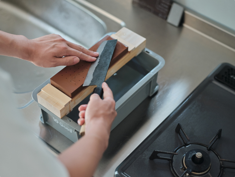 以上、砥ぎ場セットを使った、研いでみたレポートでした。切れなくなってくる包丁にお悩みの方にぜひ使ってみていただきたい、お手入れのための道具です。