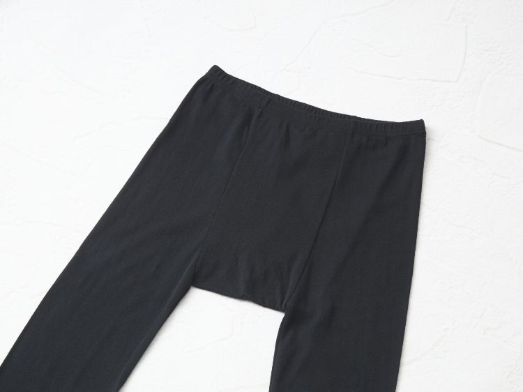 暑がりの私は、なるべく重ね着もしたくないし、それによる動きにくさもとにかく苦手。でも、さすがにボトムスの裾から入る冷たい空気によって体が冷えることには対策しています。それは足首まであるレギンスを穿くこと。Kilkaの良く伸びてお腹とお尻をすっぽり包み込むレギンスは、フライス生地でかなり伸びるのがいいところ。そのうえ、股部分もしっかりマチが取られているから、腰回りもしっかりフィットしてくれるんです。レギンスって、お尻の大きさに生地が取られてしまって、歩いているうちに股下が下がってきて、動きにくいことも多かったのですが、そんなお悩みが全くないのがいいなと思います。