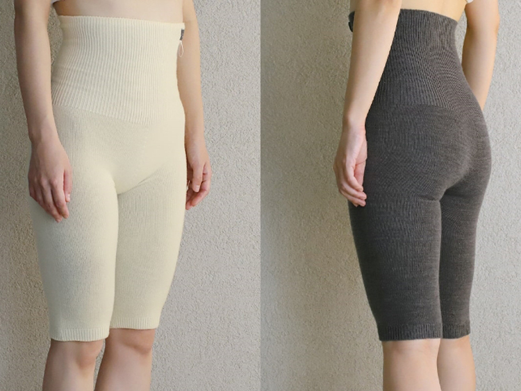 寒がりの私はくらしきぬのはらぱんがイチオシです。こちらもトップス同様に肌に触れる内側がシルクで、外側がウール。お腹から太ももまでしっかりあたたかいんです。うちの娘は私以上に寒がりで、中学生のころは冬は制服のスカートの下に欠かさずはらぱんを穿いていたんです。はらぱんに守られた学校生活といっても過言ではないと思います。バイヤー陣がみんな大好きな人気ヘアメイクさんの動画でも紹介されて、最近人気が再燃してますが、私にとっては変わらずマストなアイテムです。