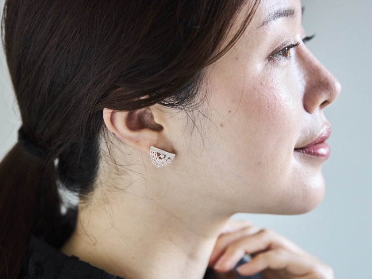 細かいレース模様は一般的な量産アクセブランドでは実現できない風合い。ひとつ一つ手作業で作っているからこそ表現できます。レースをかたどって鋳造するという伝統ある技法は、ichinoseさんが師匠から受け継いで試行錯誤を繰り返してきたものです。