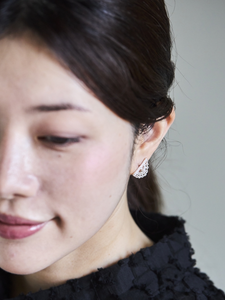 また、ホリデーシーズンに期間限定で限定販売されるhalf moonピアスも2年ぶりに登場。こちらはichinoseさんならではの、繊細なレースをモチーフにしたピアスです。