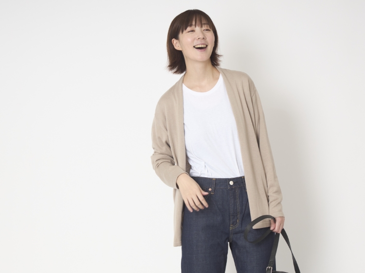 春や秋の季節の変わり目に気軽にはおれるカーディガンで、ベージュの色合いが何にでも合わせやすいです。夏でもクーラー避けとしてバッグに入れておくと安心かも。