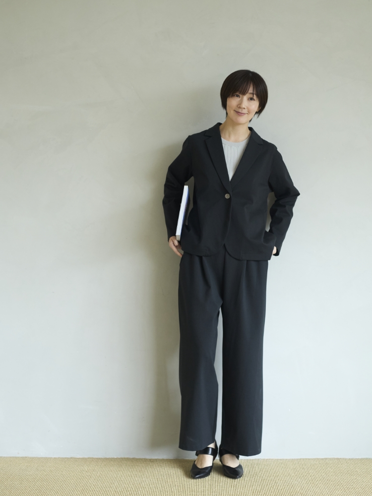 冠婚葬祭や卒入学式などのかっちりとしたフォーマルというよりも、仕事や学校の保護者会、懇親会など、ちょっとだけきちんと感が求められるシーンにぴったりなジャケット。体の動きを妨げず、窮屈な思いをしなくてすむように、数多ある国産ポンチ生地からベストなものを選んで作りました。