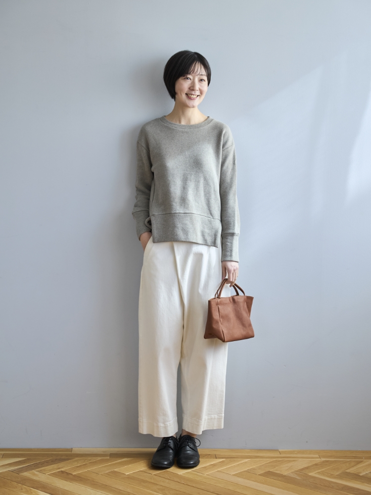 着心地がいいけどラフすぎて、家にいる時だけに限定して着ている方も多い「裏毛スウェット」。カシミヤに匹敵するとも言われているスーピマコットンを贅沢に使い、締め付け感はないのにすっきり見えるサイズ感にこだわり、外に着て行っても気後れしない一着を作りました。
