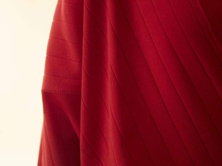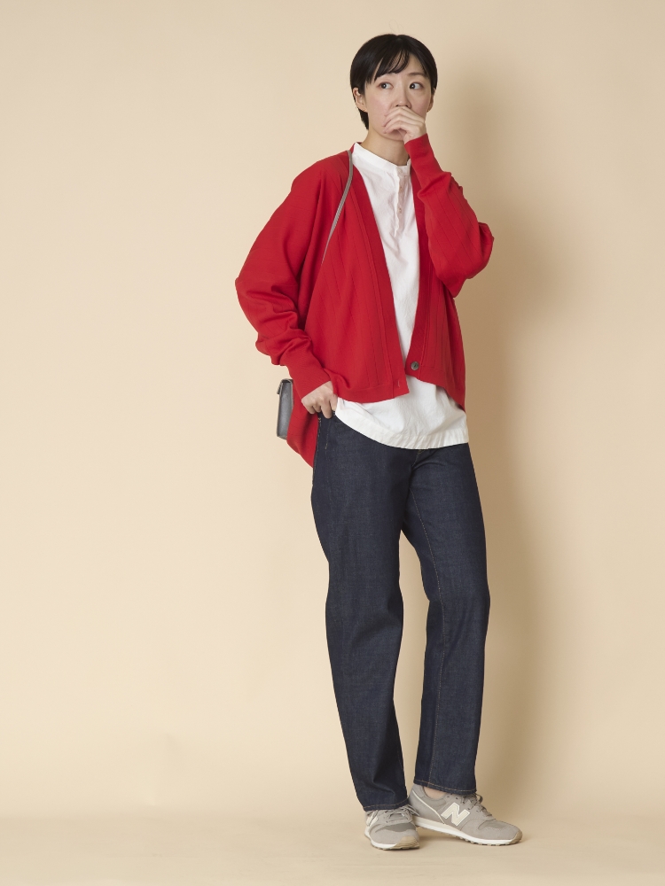 夏は冷房対策としても活躍するのでほぼオールシーズン着用可能、お仕事にも休日のお出かけにも着回しができるデザインで、出番の多い1枚になること間違いなしです。ベーシックなカラーももちろん素敵ですが、レッドはスタイルストア限定カラーで、顔まわりがぱっと明るくなるとても良い色味です。普段は明るいカラーは着ないという方も手に取りやすい深みのあるレッドなので、是非お試しくださいね。