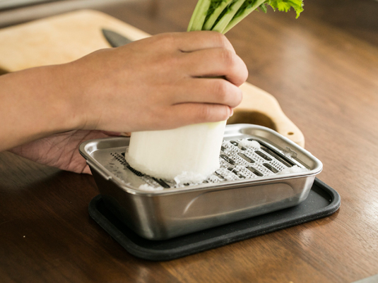 今までさまざまなおろし金を使ってみましたが、これがベストです。おろし金の歯は良いものが色々ありますが、下の受け皿がプラスチックだったり、作業するのに動きやすかったり、洗いにくかったり、水切り網が付いてなかったりで、実際に調理に使う観点から作られていないものがほとんどです。このおろし金は、それらの不満を全てクリアして、なおかつシンプルで美しい。【岡山県 | 70代 | 女性 | 匿名希望 さん】