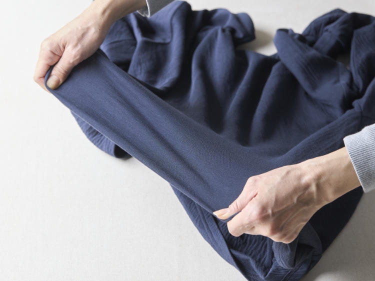また、驚いたのは、洗うたびに硬くなるどころか、さらにふっくらと育っていくこと。多重ガーゼ特有の「ポコポコ」とした空気の層が生まれ、肌にあたる面が減ることで、ベタつくこともありません。薄手の生地にありがちな「肌への張り付き」とは無縁で、常にサラリとした快適さがあります。