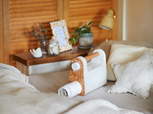 布団乾燥機は3kg以上のものが多い中、BRUNOは1.4kgと軽く、持ち手付きで片手でも移動させやすい。更に部屋に出しっぱなしにしておいても気にならない見た目のものは他社製品にはなかなかなく、貴重なんですね。