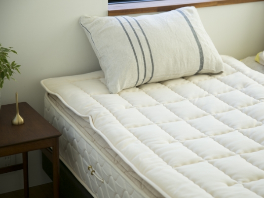 当店で人気の敷きものは、ウォッシャブルウールのベッドパッドと、シルクの敷き毛布。それぞれ使い心地を比べてみました。