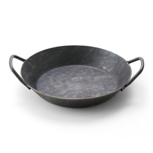 鉄製なので、使用前には「焼きならし」の作業が必要です。焼きならしとは、表面についている粒上の鉄などを取り除き、表面をなめらかにする工程のこと。また、使用後はたわしでしっかりと汚れを落とし、お湯で洗い流して火にかけ、水気を十分に飛ばすようにします。長く愛用していけるよう、使用前後に適切なお手入れが必要です。