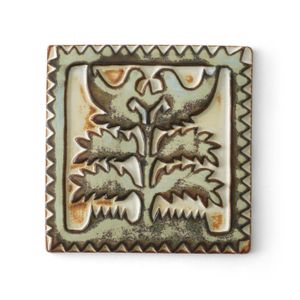 岡見宏之さんによるプロダクトブランド「POTPURRI(ポトペリー)」。POTPURRIは、初めからオリジナルでデザインしたアイテムを作っている他に、過去の先人が作ったけれども現在は使用せず埋もれてしまっている原型を選び、リメイクして現代に伝えていく、というものづくりもされています。 「ART PIECE(アートピース)」シリーズもその中のひとつ。もともとART PIECEの原型は、1960年代前後に愛知県瀬戸市にてヨーロッパへ輸出するために作られたのですが、当時は商品化されずにそのままお蔵入りになっていたそうです。それらの原型は凝った作りものが多く、今作ろうとするととても難しい技術が必要なのだそう。岡見さんはこれらの多数の原型を見て「これを現代にも伝えていきたい」と強く思われ、一部の柄に変更したりある程度量産できるように修正し、ART PIECEシリーズが生まれました。 ART PIECEの一番の特徴は、そのあたたかみを感じる風合いと空間にやわらかな雰囲気をもたらしてくれるところ。色付けは1つずつで施され、質感はマットで落ち着いた手触り。やさしくてどこか北欧風な印象もあり、アンティークのような佇まいをしています。 こちらのバードスクエアコースターは、木に止まった2羽の鳥とあたたかみのある質感が何とも愛らしい一品。釉薬は焼成によって表情が出るものを使っており、1点1点異なるところが魅力です。食卓やデスクで、あたたかくやさしい雰囲気をお楽しみ下さい。