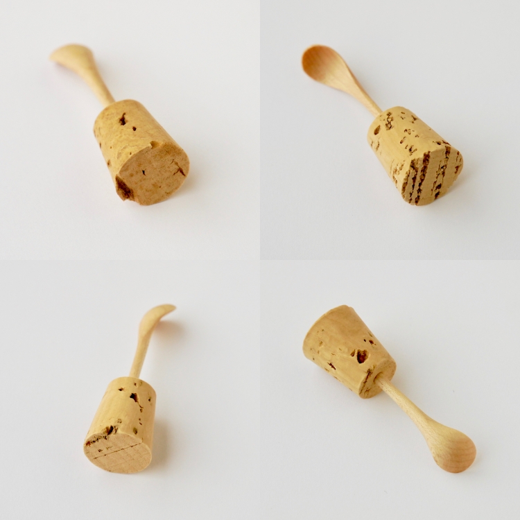一番の特徴は、蓋のコルク栓と中身をすくう木さじが一体となっているところ。