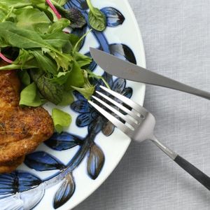 「Cutipol(クチポール)」は、ポルトガルの小さくて閑静な町・タイパスに工場を構えるカトラリー専門ブランド。1920年代に家族で経営する小さな会社としてスタートし、デザインから仕上げまで、すべて自社の職人が一本一本丁寧に作っています。 中でもGOA(ゴア)シリーズは、シンプルかつオリジナリティーに溢れる美しいデザインと、手にしっくりとなじんで使いやすいところが魅力。そして、どんな器にも不思議とぴったりと合うんですよね。作家ものの器から量産品の器まで、本当に幅広いテイストに合い、食卓をぐっと引き立ててくれるので、個人的にも数年前から愛用しています。 デザインについては、その細くてやわらかな曲線が印象的。合成樹脂でできたブラックの持ち手がアクセントになっています。人間工学に基づいて考えられているので持った時にやさしく指にフィットし、とても軽いのもポイント。あと、一見繊細に見えますが、丈夫なつくりですよ。 カトラリーセット(3PCS)は、ディナーナイフ、ディナーフォーク、テーブルスプーンが各1本ずつ入ったギフトセットです。 ■ディナーナイフ 硬いお肉やケーキのタルトもストレスなく切れます。初めて見た時には、「ナイフの歯の部分が小さめに感じるけど、切りやすいのかしら?」と思っていましたが、使ってみてびっくり!さすがお肉文化のヨーロッパのメーカーが作るナイフは、切れ味抜群です。あと、裏と表で見ためが異なる(表はすっとしたライン、裏はギザギザ)ところも、クチポールのこだわりのひとつです。 ■ディナーフォーク 先がすっと細長くなっていてパスタがとても巻きやすく、口当たりも抜群。歯と歯の間の美しさから、職人の丁寧な仕事が垣間見えます。 ■テーブルスプーン 丸くてかわいらしいかたちが特徴。すっとした口当たりでスープが飲みやすい仕上がりです。 気づけばつい手にとってしまう、食卓で大活躍してくれる一品。大切な方へのギフトにもぜひどうぞ。