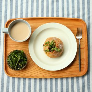 水にも強く、スープや飲み物がこぼれてしまっても、さっと拭けば大丈夫。やわらかい木材だと、物が強く当たるとへこんでしまったり、濡れるとしみになりやすかったりするため、扱いに気を遣います。その点、こちらのトレーは扱いが楽なので、使用頻度が上がると思いますよ。