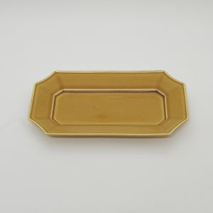 こちらのすみきり皿は、長皿、角皿、大皿の計3サイズ。四隅のカーブがアクセントで、どこかオリエンタルな雰囲気も漂う形です。