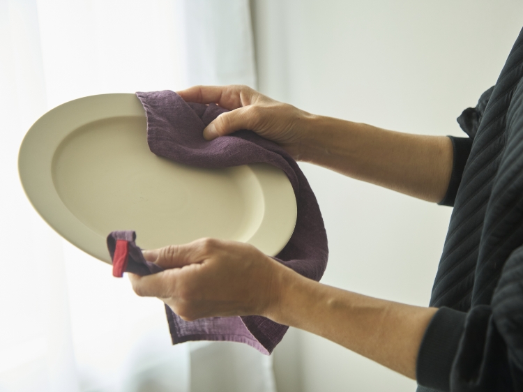 こちらのクロスの素材である麻は、高い吸水性と放水性を持つのが特徴です。つまり、水気を拭き取りやすく、濡れても早く乾くということなんですね。