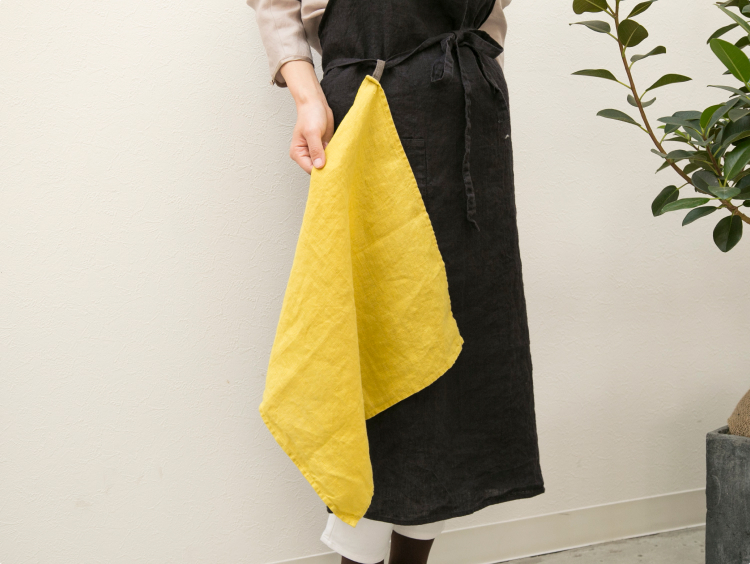 生地が厚めの作りで耐久性にも優れるこちらなら、たくさん洗っても大丈夫。使うほどにやわらかな味わいも増すので、愛着を持ってお使いいただけますよ。