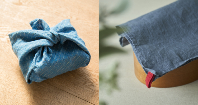 例えば、お弁当包や目隠しとして。程よい大きさの正方形だから、お弁当やおにぎりなど包みやすいのに加え、カゴや整理ボックスに掛けたりバッグの目隠しにしても、とっても様になりますよ。