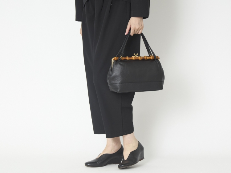 POMTATA/バンブーガマグチ ハンドバッグ お出掛けには、バンブーがま口のハンドバッグを