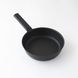 高さは約5−6cmと、フライパンにしては深さがあるので、お肉やお魚、野菜を焼いた後にそのまま煮込みやすいのも嬉しいところです。鋳物は熱伝導に優れていて、底面だけではなく側面からもしっかりと熱が伝わるので、食材にムラなく火が通ります。