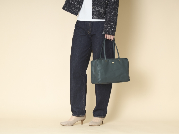 ナイロンほどカジュアル過ぎず、レザーのバッグとはまた違った機能と佇まいを持つ、大人の女性におすすめしたい一品です。