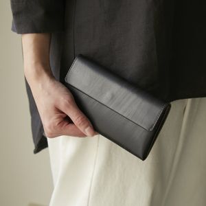 プレーンなデザイン。シンプルながら、safujiの美意識が行き渡った、薄いミニ長財布です。