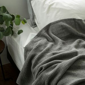 ちなみに、敷いて使うこともできるサイズで、敷いても肌ざわりが気持ち良いです。が、敷いて使うと体重がかかる分、擦れたり糸のほつれに繋がりやすいタイプだと思います。ラーナは掛けた方がその特性を発揮しやすいので、ぜひ掛けて使ってみてください。