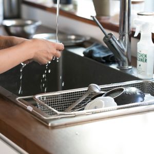 箸が落ちない!調理台を広々使える水切りかご