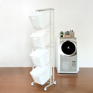 スイング式ランドリーバスケット 4段 見せたくない洗濯物をサッと隠せるランドリーバスケット