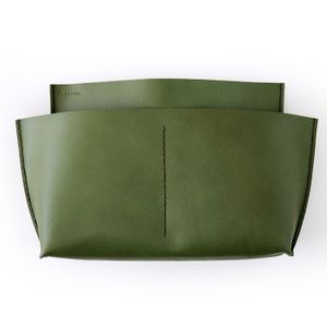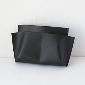 バッグinバッグ自体はたくさんの種類が販売されていますが、その多くはナイロンや布製。KAKURAの5レザーポケットは薄く漉かれた革製で、環境に配慮した100%ナチュラルタンニン鞣し革が使われています。