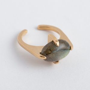 丸い石と、建築物のように立体的に組まれた石座が特別感を感じさせるこちらのリングは、年齢を重ねた女性の指にこそ映えるもの。この存在感を放つ天然石リングが、身に付ける人の毎日を少しだけ明るくできるものになればいいなと思います。