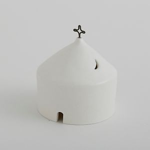 kakuは、家を想像するときに真っ先に思い浮かぶような三角屋根の四角い家。屋根の十字架がポイントになっています。雪が降る寒い国に、点々と建っていそうな雰囲気です。