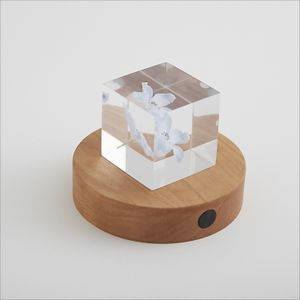 光源はLEDで熱を一切持たないので、花器や植物をのせても大丈夫。ガラスやアクリルのように透明感があり、光を通すものは点灯すると見栄えがいいのでおすすめです。
