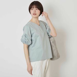 そして注目していただきたいのが、この袖のデザイン。つまんで縫製した立体的なパフスリーブが、シンプルなデザインの中でいいアクセントになっています。