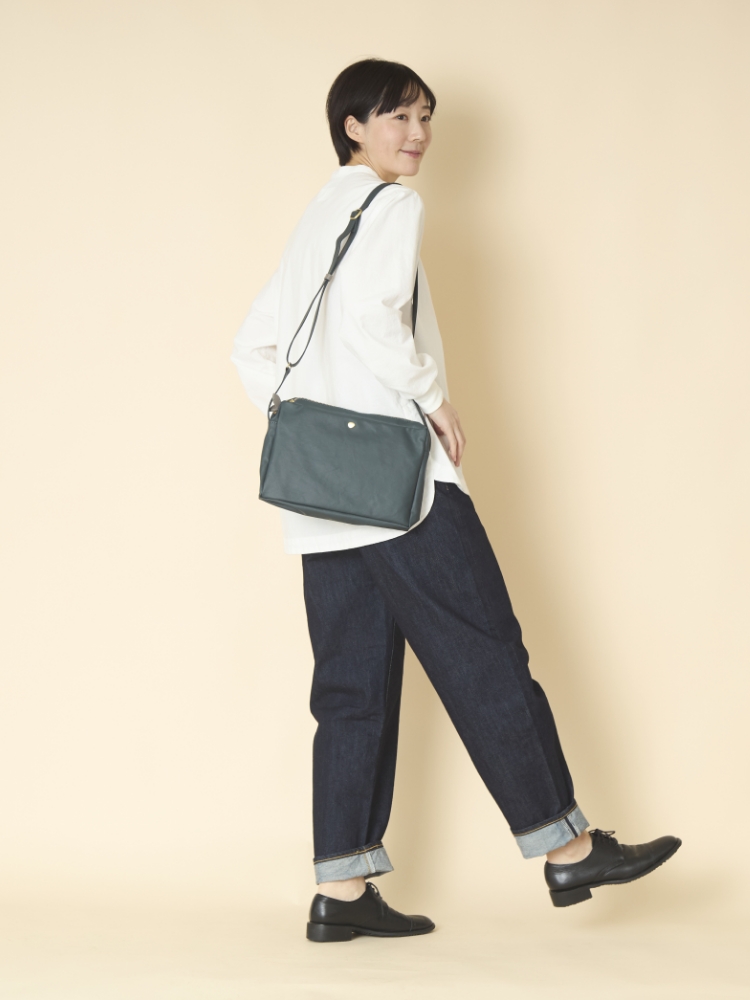 キャンバスの生地目が浮き出た優しい雰囲気は、ナイロンほどカジュアル過ぎず、また縫い目が極力表に出ないようデザインされているので、きれい目の服装にも合う佇まいです。