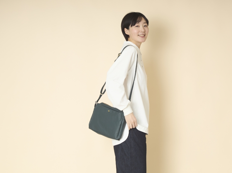 ストラップは、自由に長さが変えられて、肩掛け、斜め掛けのどちらにも対応可能です。