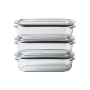 こちらのアイテムは「調理ができる保存容器」がぴったり収納できるように作られたもの。トレーMには、Sサイズの容器を3つ、またはSとMを1つずつのせられます。トレーLですと、Mサイズ3つか、MとLが1つずつという組み合わせに丁度いいですよ。合わせて使えば、余分な空間を極力作らずに冷蔵庫内の収納ができます。